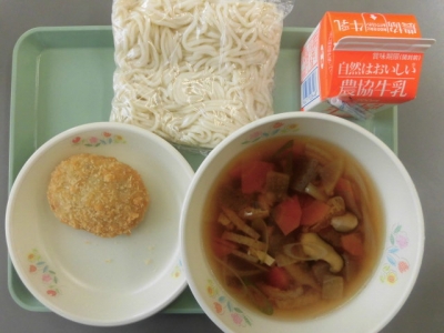 今日は、けんちんうどん、野菜コロッケ、牛乳 でした。