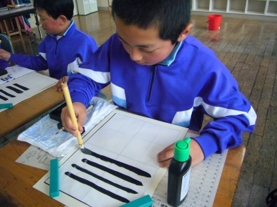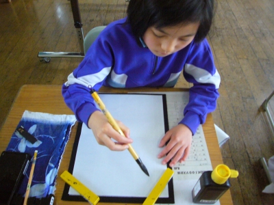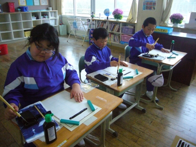 2015年4月10日 16時38分今日は3年生の3人にとっての初めての毛筆の授業がありました。