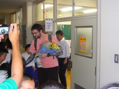 最後は,全校生でダニエル先生のお見送りをしました。