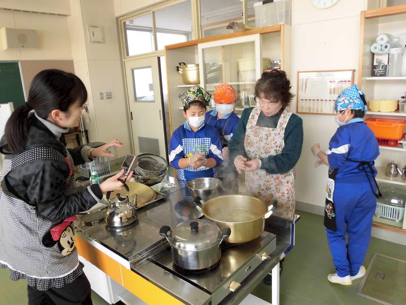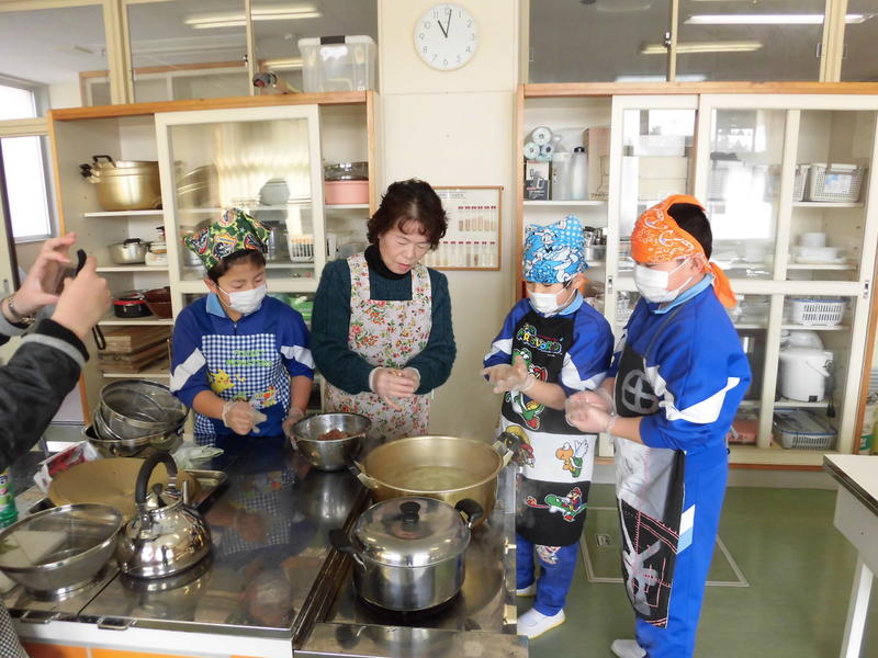 2019年2月15日 11時41分地域の先生をお招きし、3・4年総合「桶売グルメガイド」の郷土料理の実習です。