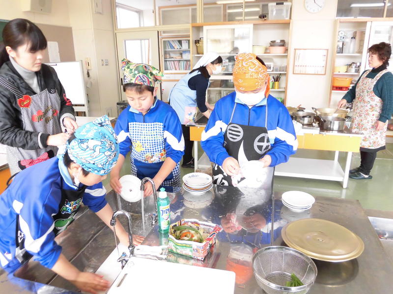後片付けも一生懸命行います。食における先人の知恵や工夫、思いにつながりますように。