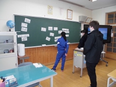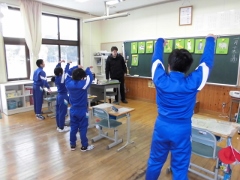 1・3年生では、動物を表す英単語をALTの先生に教えてもらい、ジェスチャーを使って問題を出したり答えたりしました。6年生は、ALTの先生が話す英語が『桃太郎』のどの場面を表しているのか聞き取り、先生とどちらが速くそのカードを取れるか競いました。どちらの授業も、とっても楽しそうでした。