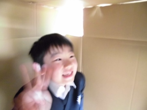 2015年1月29日 16時30分今日は、3年生の図工の時間に段ボールを使って教室にみんなで迷路を作りました。