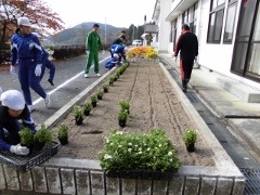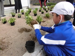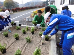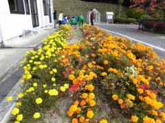 2015年10月19日 14時20分今日の昼休みの時間に花の植え付け作業を小中合同で行いました。