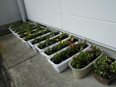 今回は、プランターと花壇の一部に植え付けました。花壇には6月に植え付けをした花がまだ元気にきれいな花を咲かせていたので、一部に秋冬の花を植えることにしました。