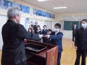 集会に先立ち、表彰が行われ、地区作文コンクール「準特選」の賞状が渡されました。
