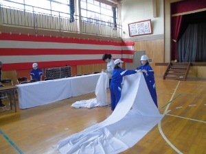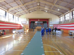 2017年3月10日 16時05分中学校の卒業式に向けて、式場の準備をしました。少人数の本校は、全校生、教員総出で準備を行いました。