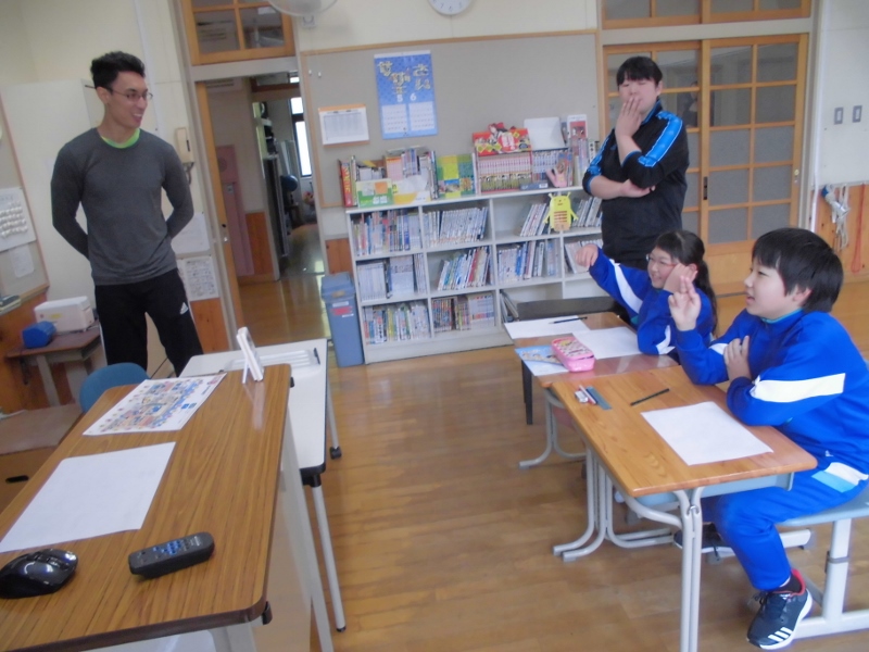 2018年6月18日 15時30分今日の英語の時間はALTの先生がいらっしゃる日なので、4・5年生が一緒に英語を学びました。