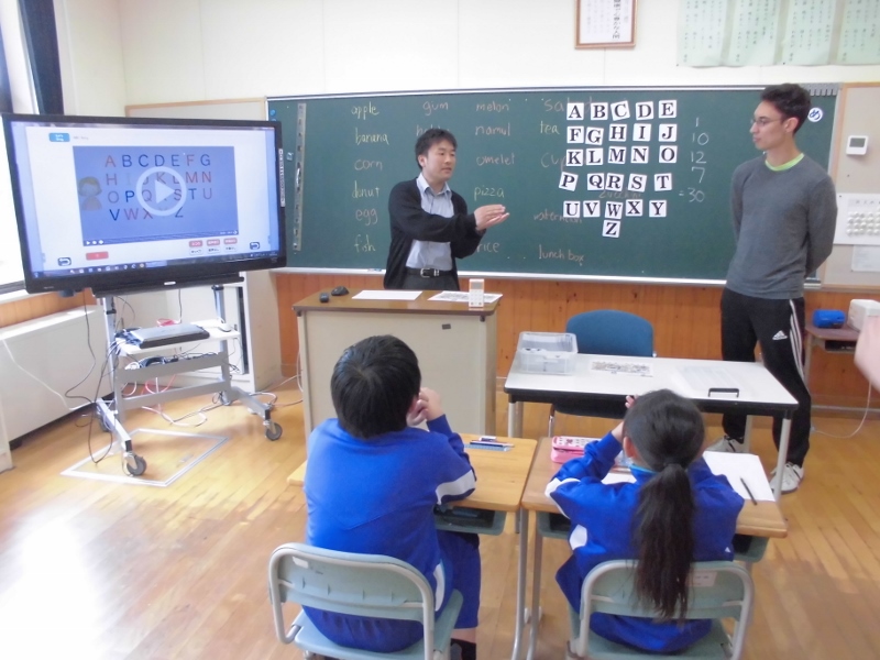 今日の英語の時間はALTの先生がいらっしゃる日なので、4・5年生が一緒に英語を学びました。