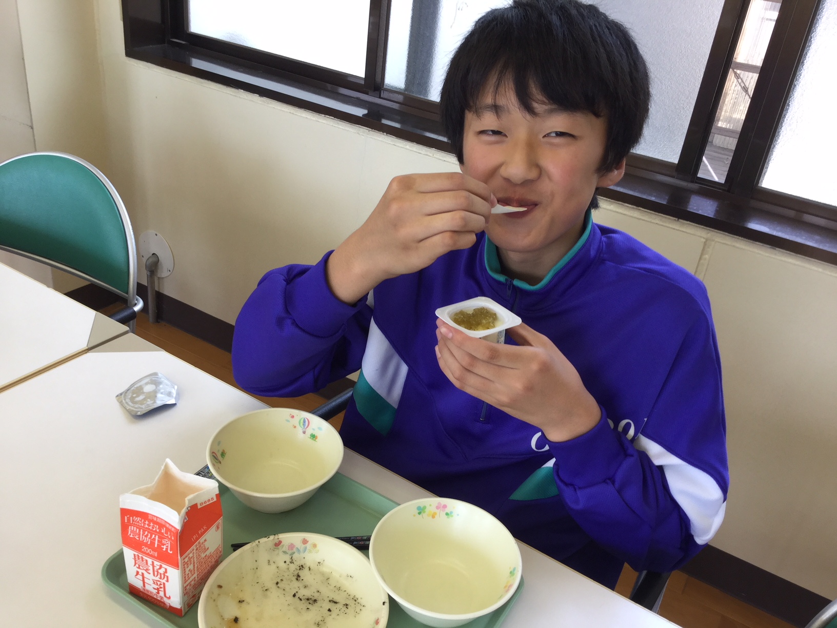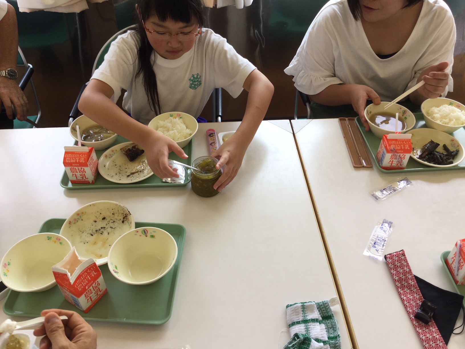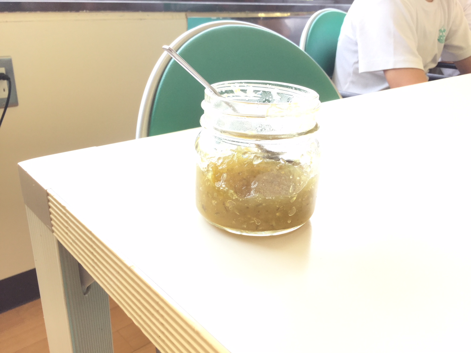 2018年7月17日 14時00分本日の給食の時間、おじろいキュウリのジャムがテーブルに並びました。こちらは、地域の方から差し入れでいただいたものです。ジャムとよく合う、ヨーグルトも一緒にいただきました。さて、お味の方は…?