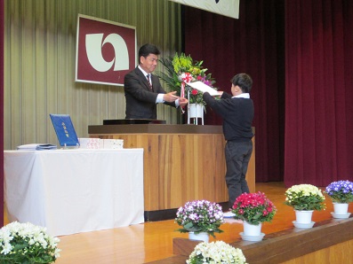 最後に、本校の3名の児童が、白水小学校への思いをまとめた作文を発表しました。子どもたちの立派な作文発表の後、感動が会場をつつみこみ、拍手が鳴りやみませんでした。また、感動のため、その後の校歌斉唱では、声につまってしまう思いでした。