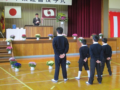 終わりに、吉田教育長に校旗を返納し、閉式となりました。