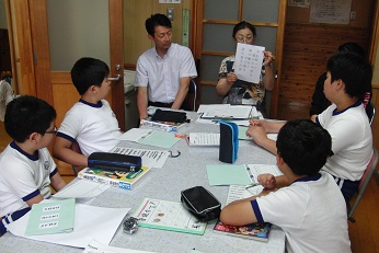 本校では、少人数の身軽さを生かして、毎朝、全校朝の会を行っています。全校生・全職員であいさつを交わし、いっしょに歌を歌います。その後は、職員が輪番制で朝のお話をします。毎日、それぞれの先生方が自分の持ち味を生かしてとてもいいお話をしてくれています。そこで、6月からは、先生方のお話を聞いた後で、聞いた内容の記録を残すことにしました。