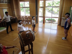 今日は、明日に開催予定の陸上競技大会に参加する6年生の児童を励ます会を行いました。在校生が和太鼓の音に合わせて元気よく応援してくれました。