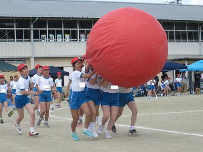 「紅白対抗大玉送り」:全校生、心を一つに!