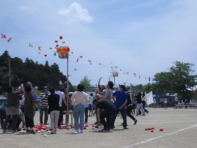 「学年対抗玉入れ(PTA)」:子どもたちへの模範演技でした。