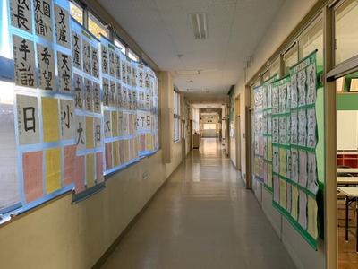 書写作品は1階廊下に、図工作品は体育館に展示してありますので、お迎え等ご来校の際は、ぜひご覧になってみてください。いずれ劣らぬ力作ぞろいですよ!