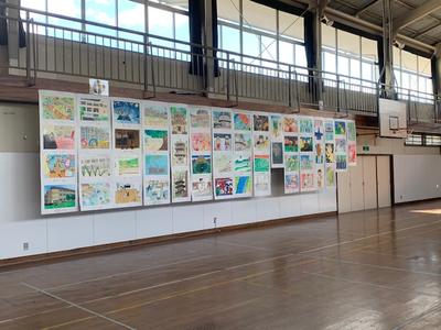 勿来・遠野・田人方部の小学生による図工・書写作品が本校に回ってきました。今日と明日、2日のみの鑑賞期間です。(明日の午後3時過ぎには撤収し、次の学校へ運ぶ予定です)