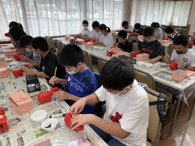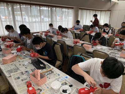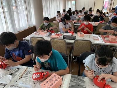 2020年9月18日 11時33分赤べこ絵付け体験。個性的な作品が多いようです。