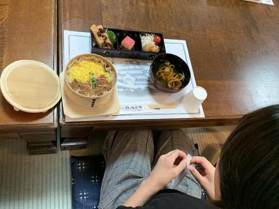 2020年9月18日 12時17分お楽しみ❗️お昼の時間です。わっぱ飯にトンカツ…、会津の定番ですね。