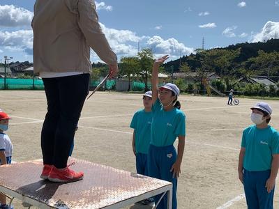今週月曜日は、式典関係の代表児童の練習(開式のことば、優勝杯返還、誓いのことば、校歌の指揮、閉式のことば等)、火曜日は全体練習で姿勢や心構え・式の流れの確認やラジオ体操の練習、水曜日は紅白対抗リレーの練習を行いました。