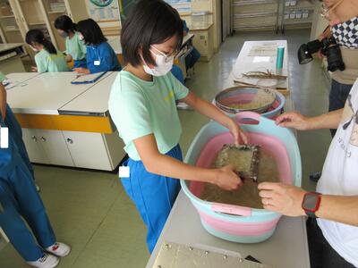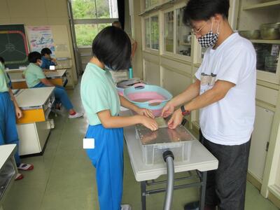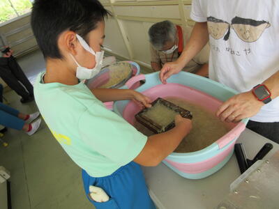2021年9月29日 16時42分今日は「遠野紙子屋」の代表の方にご来校いただき、6年生が紙漉き(かみすき)に挑戦しました。