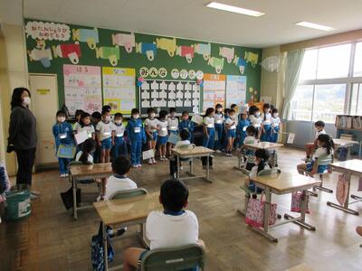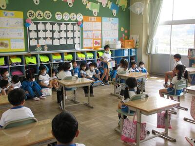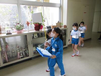 2022年4月21日 11時03分 令和4年4月21日(木)、2年生が1年生を案内し、学校探検を行いました。まず、1年生の教室でお互いに自己紹介をしました。「ぼくの名前は、〇〇です。好きなデレビは、…です。よろしくお願いします。」先生から、約束として、大声をださない、…などの確認があり、「発見をしてきましょう。」と探検が始まりました。