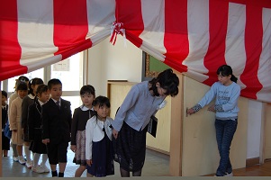 10名のかわいい1年生が入遠野小学校に仲間入りしました。担任から名前を呼ばれて、元気よく返事をすることができました。これから、いろいろな授業や行事が始まるので、楽しみですね。