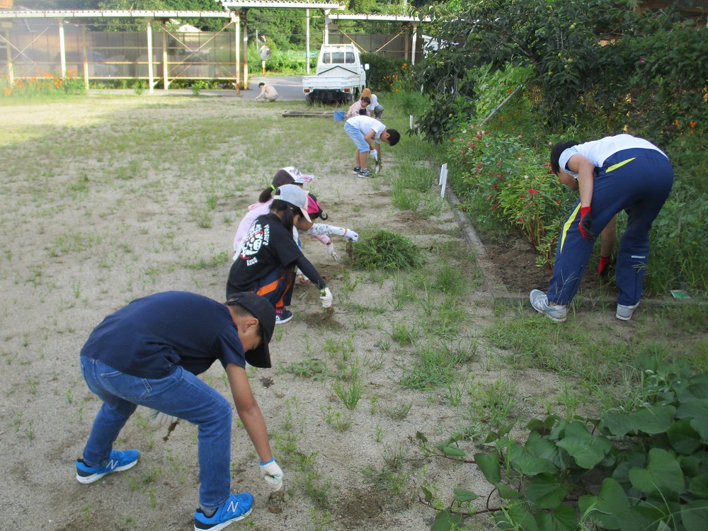 おかげさまで、校庭や校舎周辺の草はみるみるなくなり、気持ちよく2学期が迎えられます。