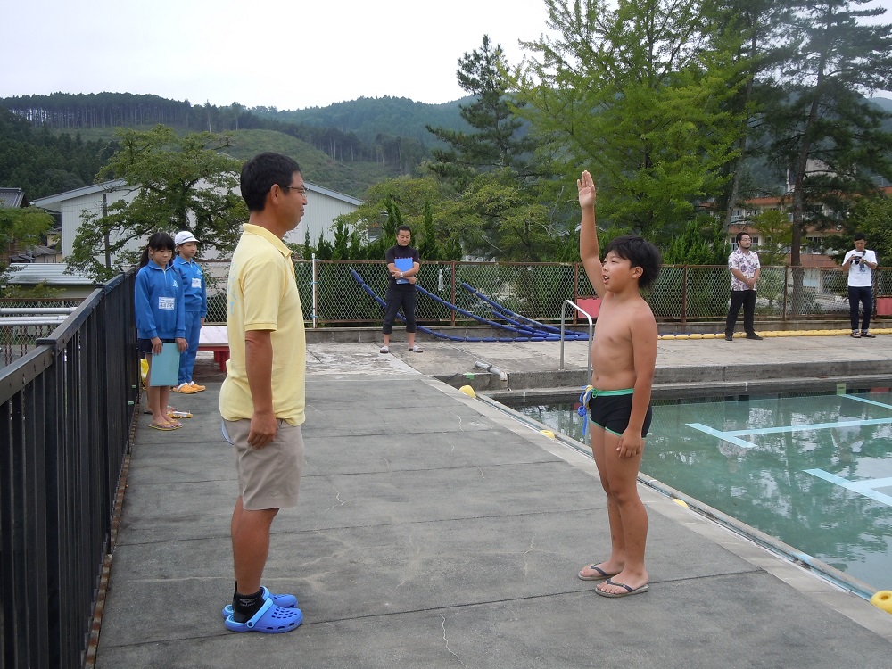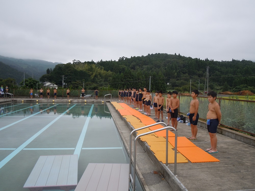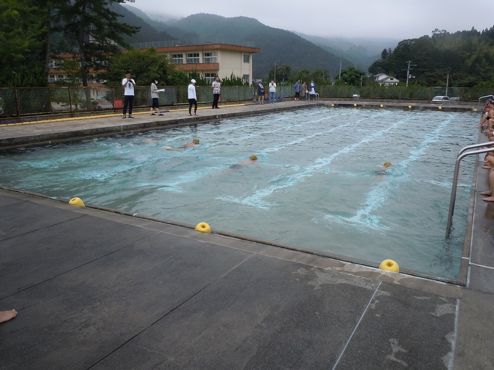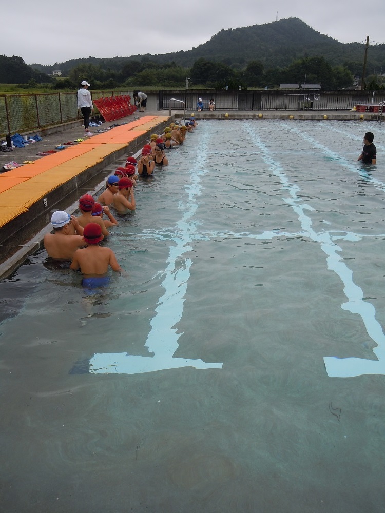 授業と夏休みの練習の成果を存分に発揮した子ども達。途中雨粒がポツリポツリと落ちてきましたが、そこは上学年コンションの悪さなど気にも留めず,最後までしっかりと泳ぎ切りました。