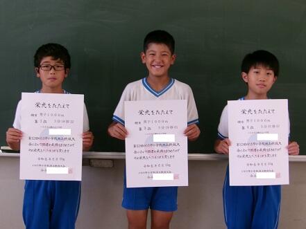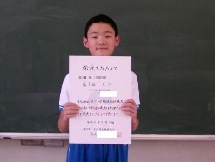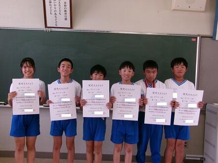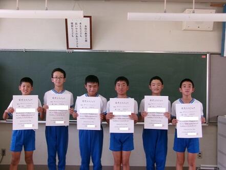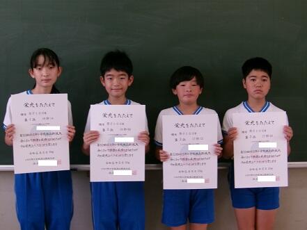 給食後の時間、臨時の全校集会を行い、「いわき市小学校陸上競技大会」の表彰を行いました。入賞した選手も、入賞に届かなかった選手も、一生懸命練習に取り組み、大会では自己ベスト記録を目指しました。