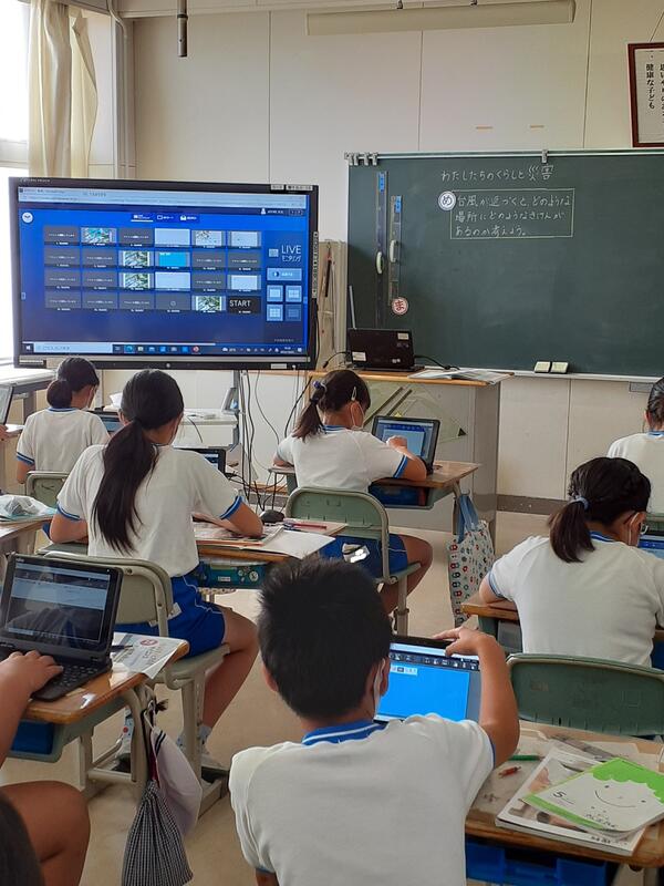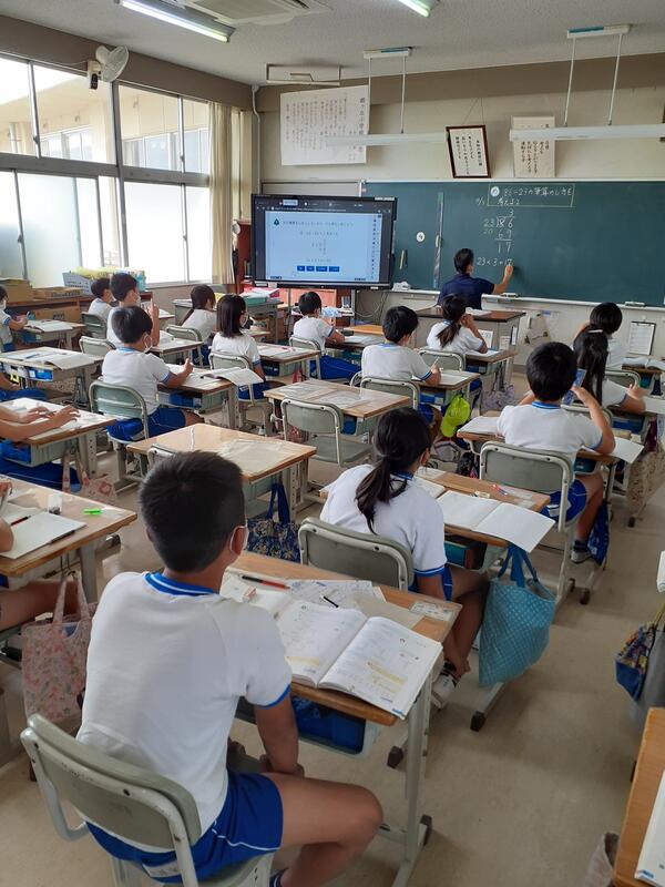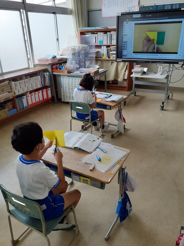 授業の様子 2022年10月3日 12時10分 3年生教室前の廊下に飾ってありました。3年生「学習発表会」の演目は、お祭りに関係あるのでしょうか? 続きを読む 3枚とも3年生の練習風景です。これらがどうつながっていくのでしょう。楽しみですね。上の2枚は、4年生算数の授業の様子です。どちらのクラスも全員集中して学習していました。すこやか学級では、モニターを見ながら色紙を切っていました。三角形を開くと出てきたのは・・・。5年生の理科の授業です。オクリンクという機能を使って、自分の考えを送ります。それらの考えはモニターに反映され、比較・検討に役立ちます。 閉じる