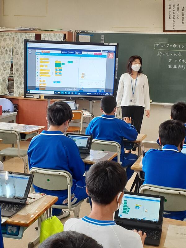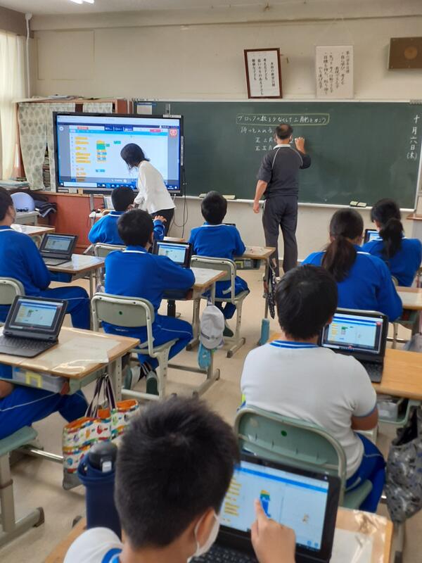 2022年10月6日 13時36分6年生の算数の授業です。プログラミング教育といっても、特別そのような教科があるわけではありません。各教科の指導内容を学びながら、コンピュータに意図した処理を行うよう指示します。