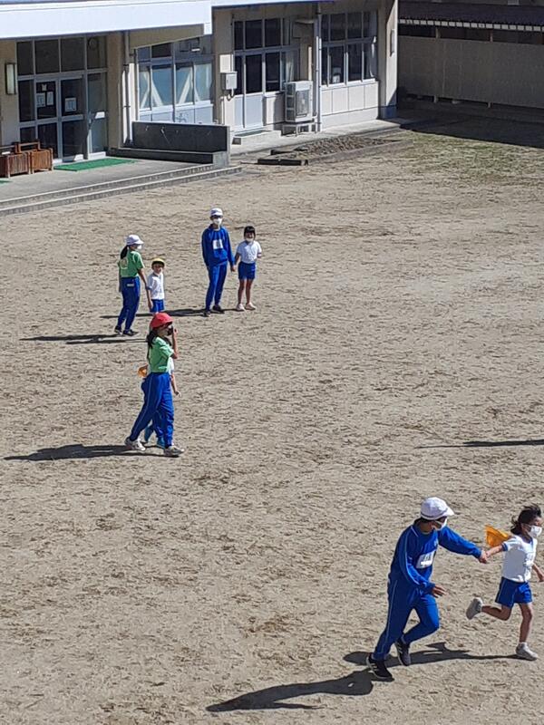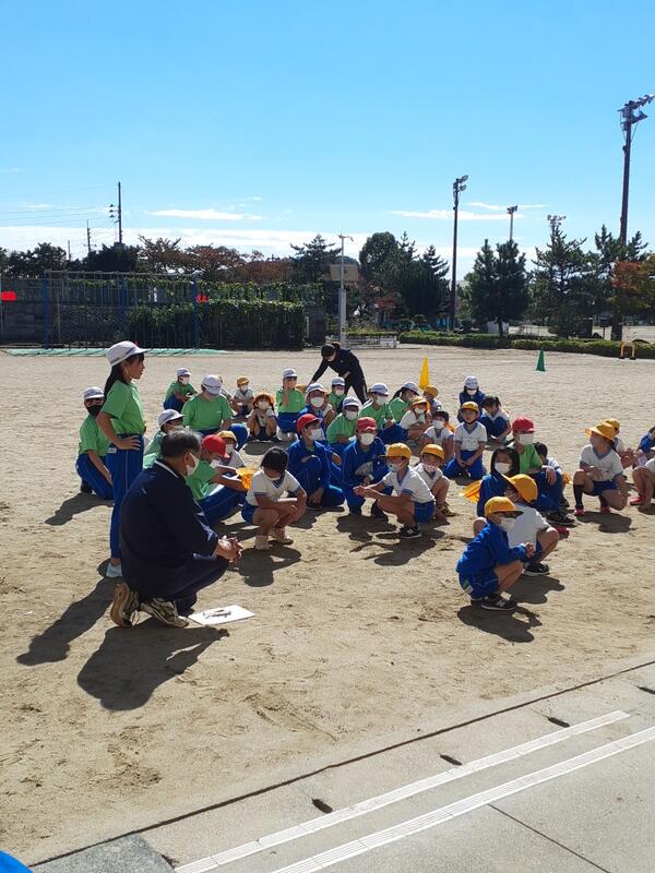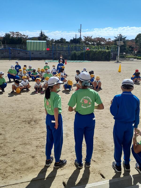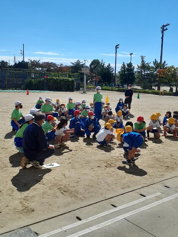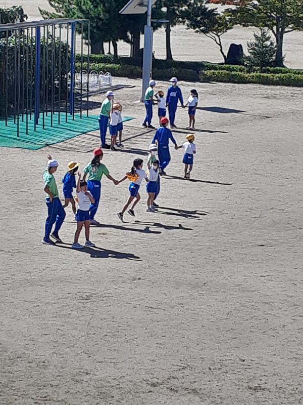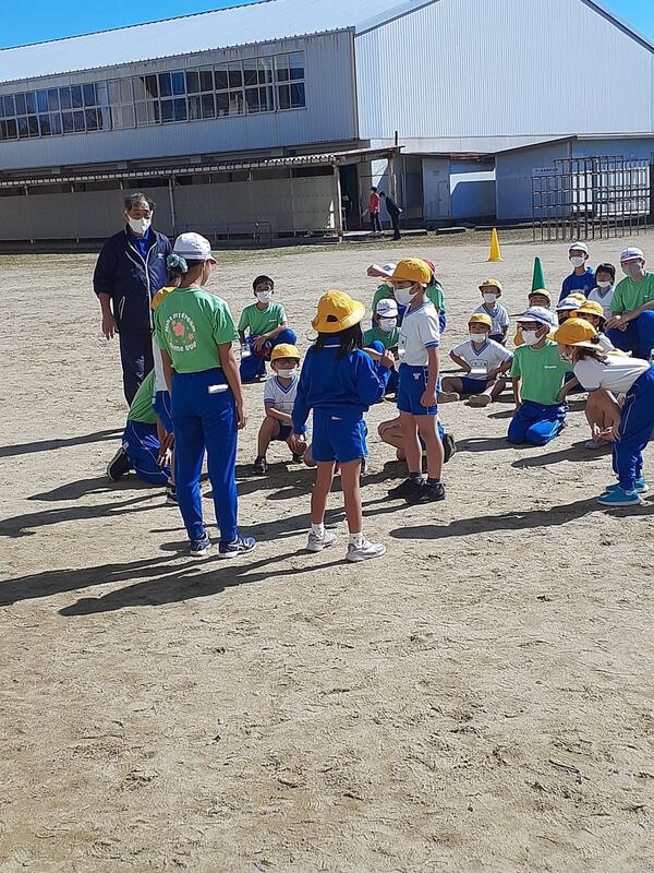 1年生ともっと仲を深めるためには 2022年10月19日 11時20分 「こおりおに」の様子です。2階からの写真です。1年生と6年生が仲よく遊んでいますが・・・ 続きを読む 6年生は国語の時間、「1年生との仲をもっと深めるためにはどうしたらよいか」について話し合ったそうです。その結果、「おにごっこ」をして仲を深めようということになりました。6年生が1年生に遊び方(ルール)の説明をしています。今度は「色おに」のようです。じゃんけんでおにを決めています。ペアをつくっていますね。「おにさん、おにさん、なに色ほしい?」「みどり!」みどり色のコーンが安全地帯のようです。本校で特に力を入れている「振り返り」場面です。1年生と6年生が、遊びを振り返って感想を交流しています。「振り返り」がないと、「ああ、楽しかった。」だけで終わりがちです。どこがよかったのか、今後どうしていきたいのか、などと振り返ることにより今後につながっていきます。 閉じる