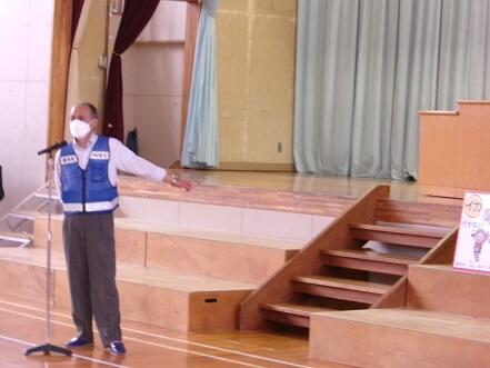 外部講師の方からは、防犯標語「いかのおすし→いかない のらない おおごえをだす すぐにげる しらせる」等についてご指導していただきました。また、子どもたちへのご指導の後、教職員向けにお話をしていただきました。