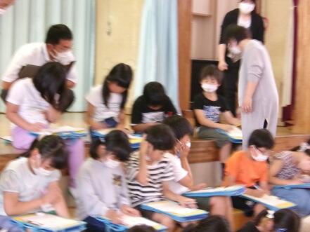 5時間目に、3年生が理科の研究授業を行いました。ゴムの伸ばし方によって、物の動き方がどのようにかわるかを実験を通して考えさせる授業でした。授業の様子を見てくださった講師の先生は、実験の手際よさ、たくさんの気づきやつぶやき等、子どもたちの力に感心していました。