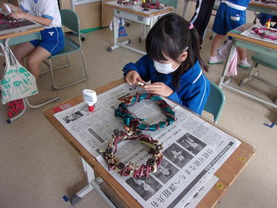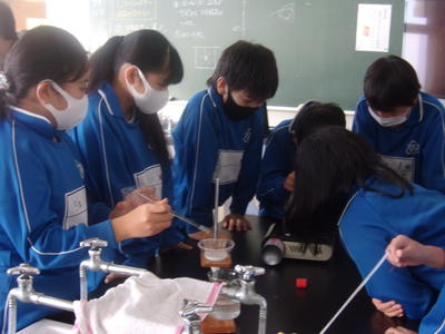 5年生は、理科の学習。ミョウバンの結晶を作る実験です。どうやったら、大きい結晶ができるのかな?