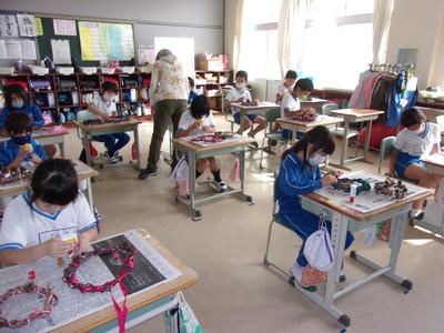 すこやか学級では、さつまいものつるを利用してリース作りに取り組んでいました。