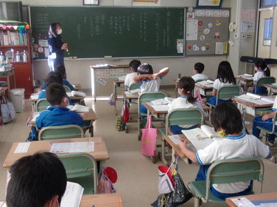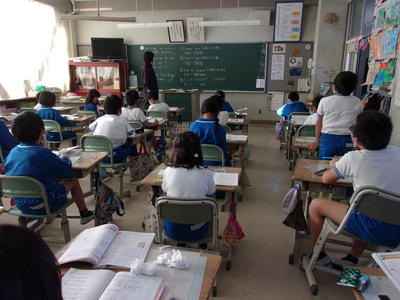 3年生では、長さや重さそしてかさの単位のまとめを学習していました。元気な声で、発表していました。