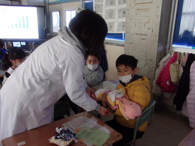 4年生の学級活動は、性教育でした。二次成長について学習し命の大切さを学んでいました。本物の赤ちゃんと同じくらいの大きさと重さの人形を抱っこしました。