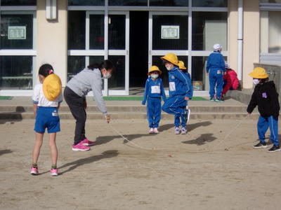 休み時間、気温も上がり暖かさも感じられました。なわとびなどで、思い思いに身体を動かしました。
