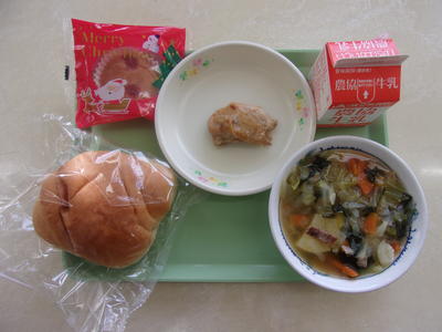 そして今日の給食は、ひと足早いクリスマスメニューでした。