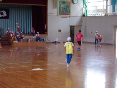 今日も梅雨空、雨模様になりました。5年生は体育館でソフトボール。