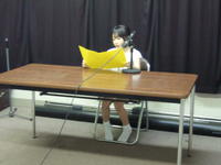 3年生は、風の強さで車が動く距離はどのようにちがうか・・・を調べる理科の実験中!しっかり記録を取っています。
