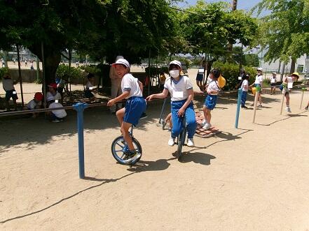 大休憩の様子です。青空の下、子どもたちは元気に遊びをしていました。笑顔一杯でした。
