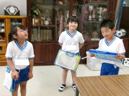 大休憩の時間、1年生の子どもたちは校長室に来て、自己紹介をしました。とても上手でした。
