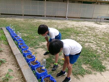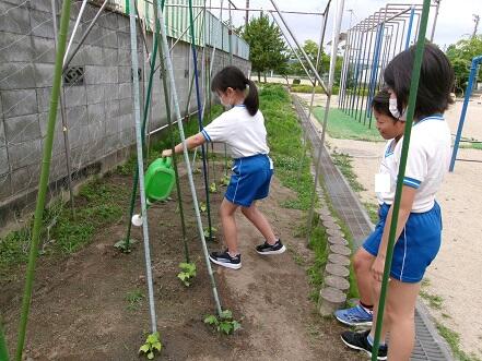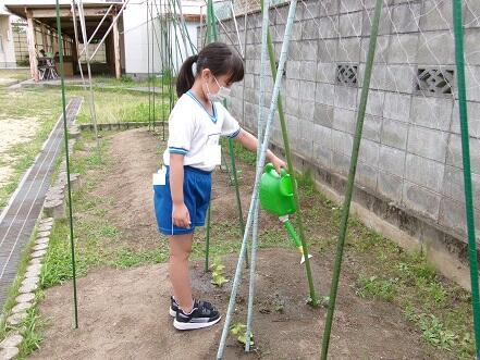 朝の様子です。色々な学年の子どもたちが植物の世話をしていました。郷ケ丘小学校の朝は、いつも明るく、そして穏やかです。