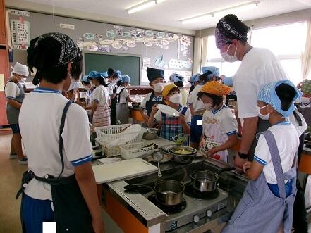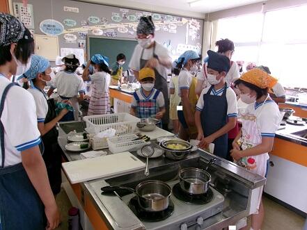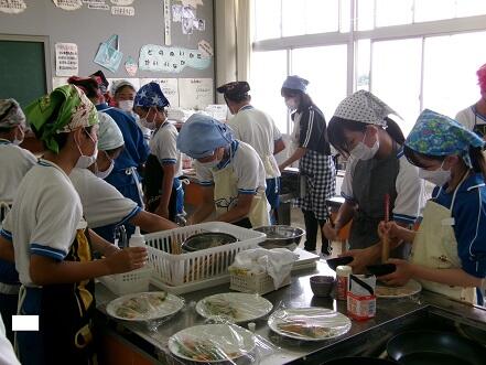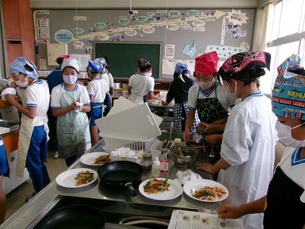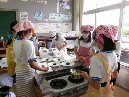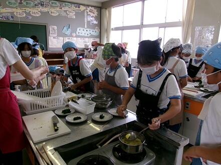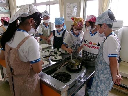 2校時目、5年生は調理実習を行っていました。初めて学習する家庭科、そして調理実習。大変意欲的でした。