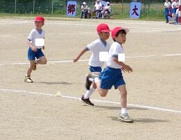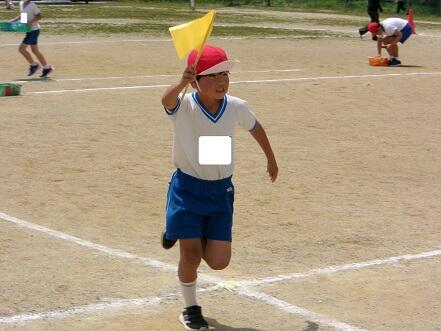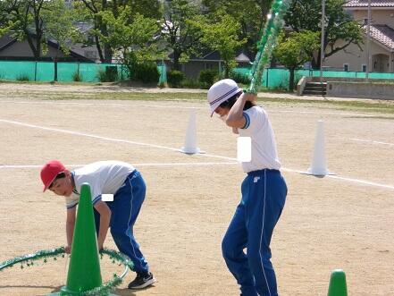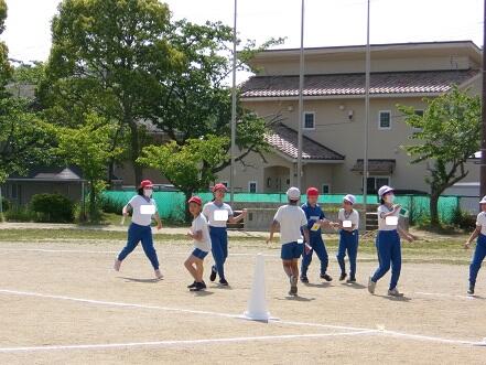 大休憩の時間、運動会に向けて、代表児童が一生懸命練習に取り組んでいました。