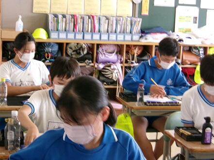6年生は、理科、外国語、書写の学習を行っていました。運動会練習、陸上練習と疲れもたまっていると思いますが、集中して学習に取り組んでいます。また、本校は、理科の研究指定を受け、全職員で理科の研究を推進しています。「理科好き」の子どもを育てていきます。